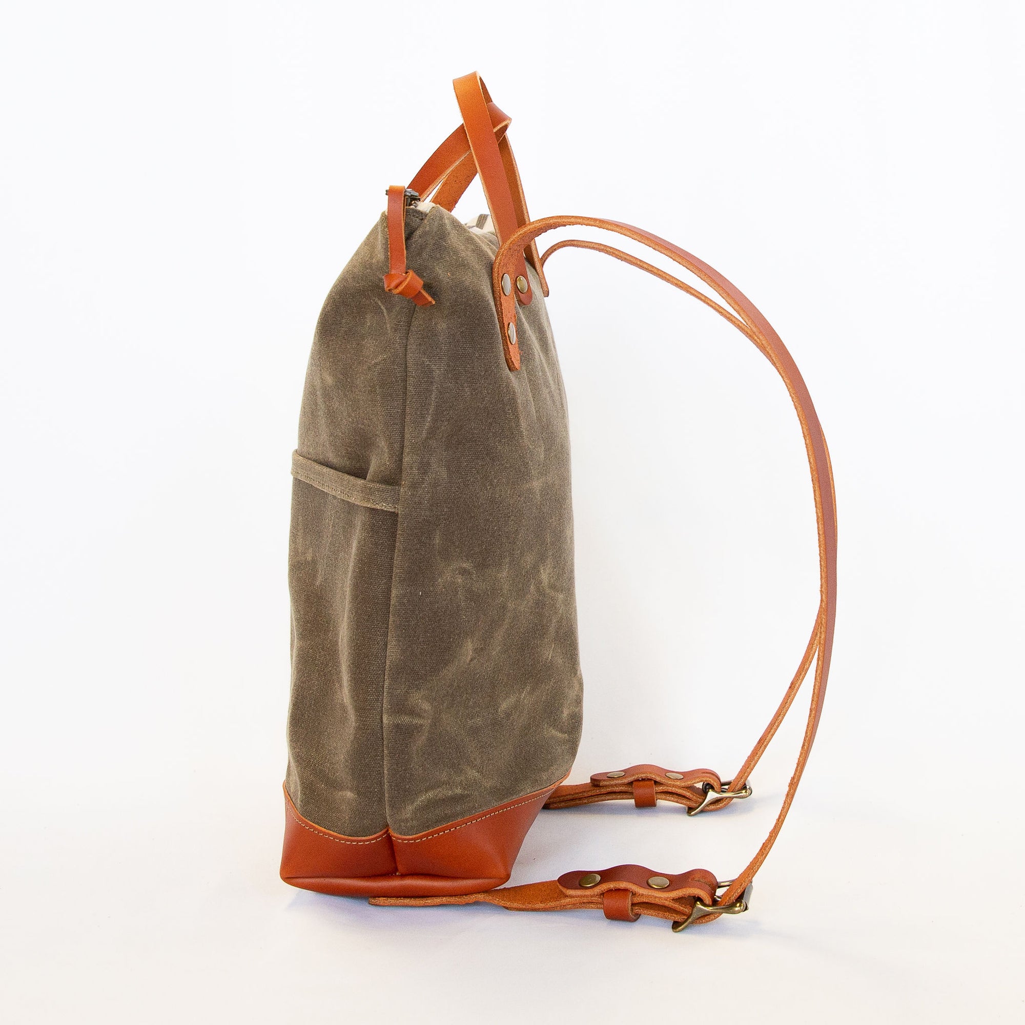 The deluxe, leather bottom version of our York Backpack. A sleek and streamlined backpack with the minimalist in mind. Made with 20 ounce waxed cotton canvas, water-repellent natural canvas lining, chestnut bridle leather straps and bottom panel, and antique brass hardware.