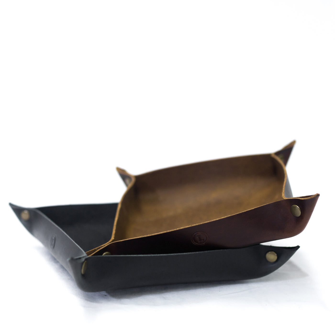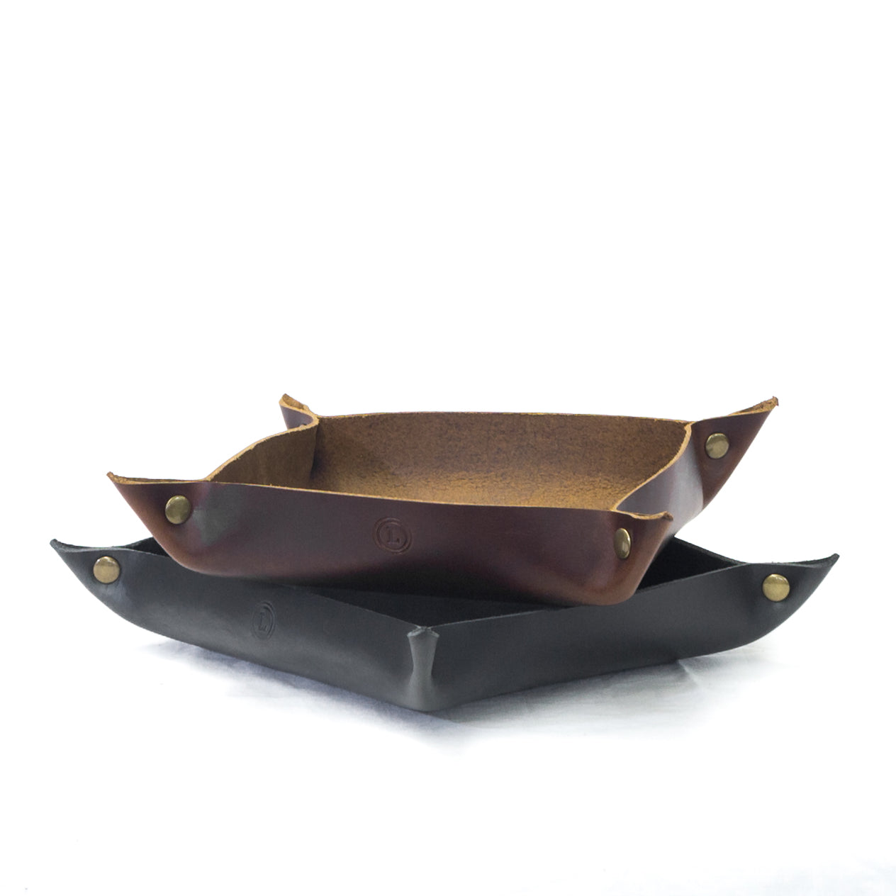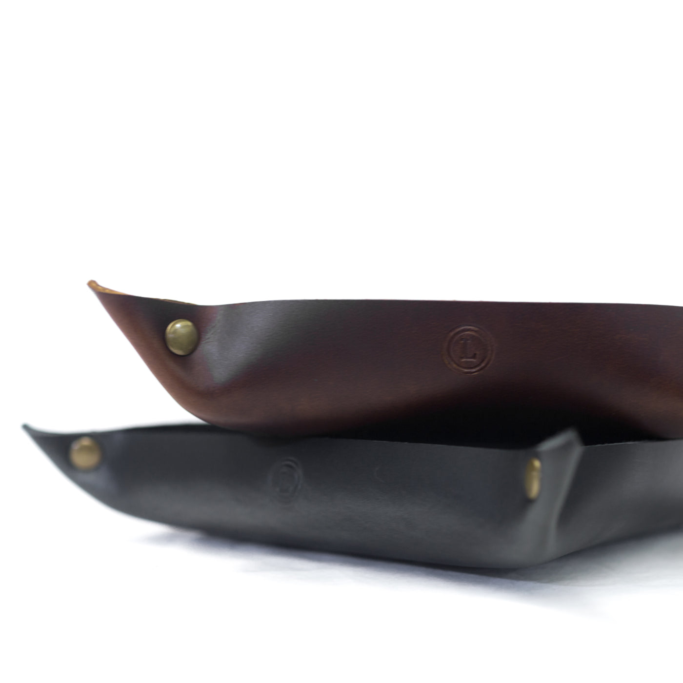 Our leather valet tray is a perfect catch-all for keeping  your everyday carry essentials and accessories organized in one spot. Made with full grain leather and antique brass rivets.