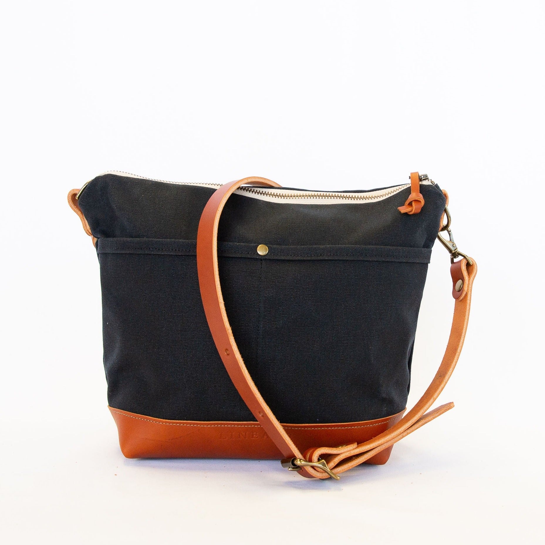 - Zippered main compartment with canvas lining