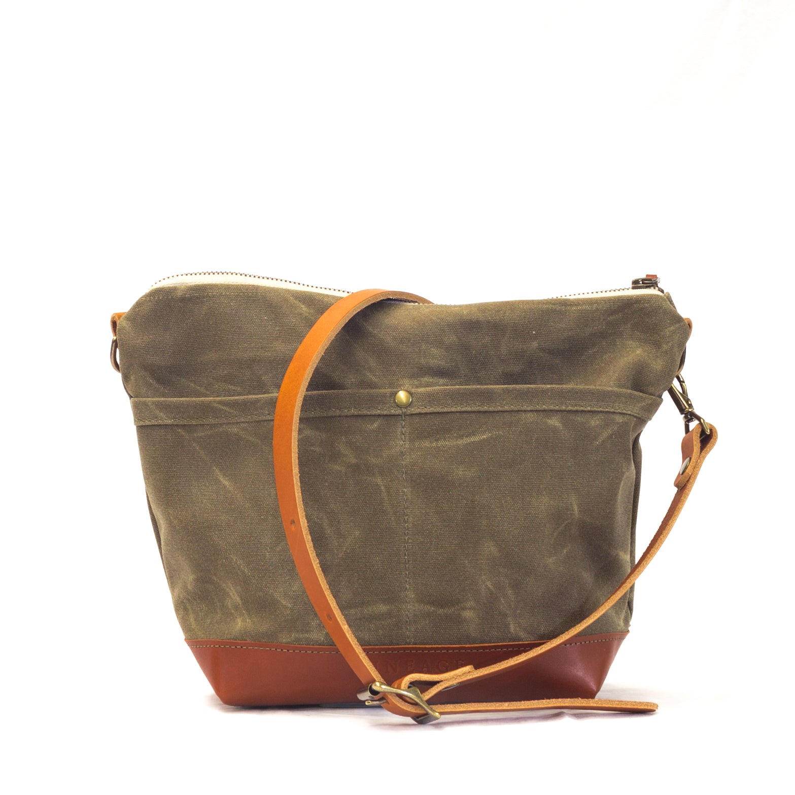 - Antique brass YKK zipper, made in the USA