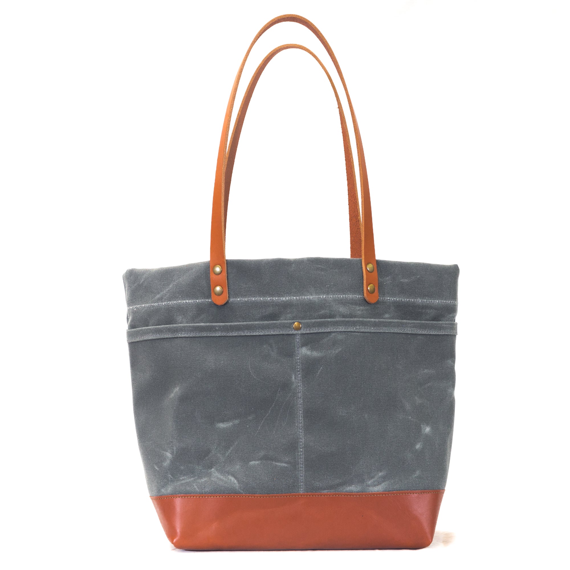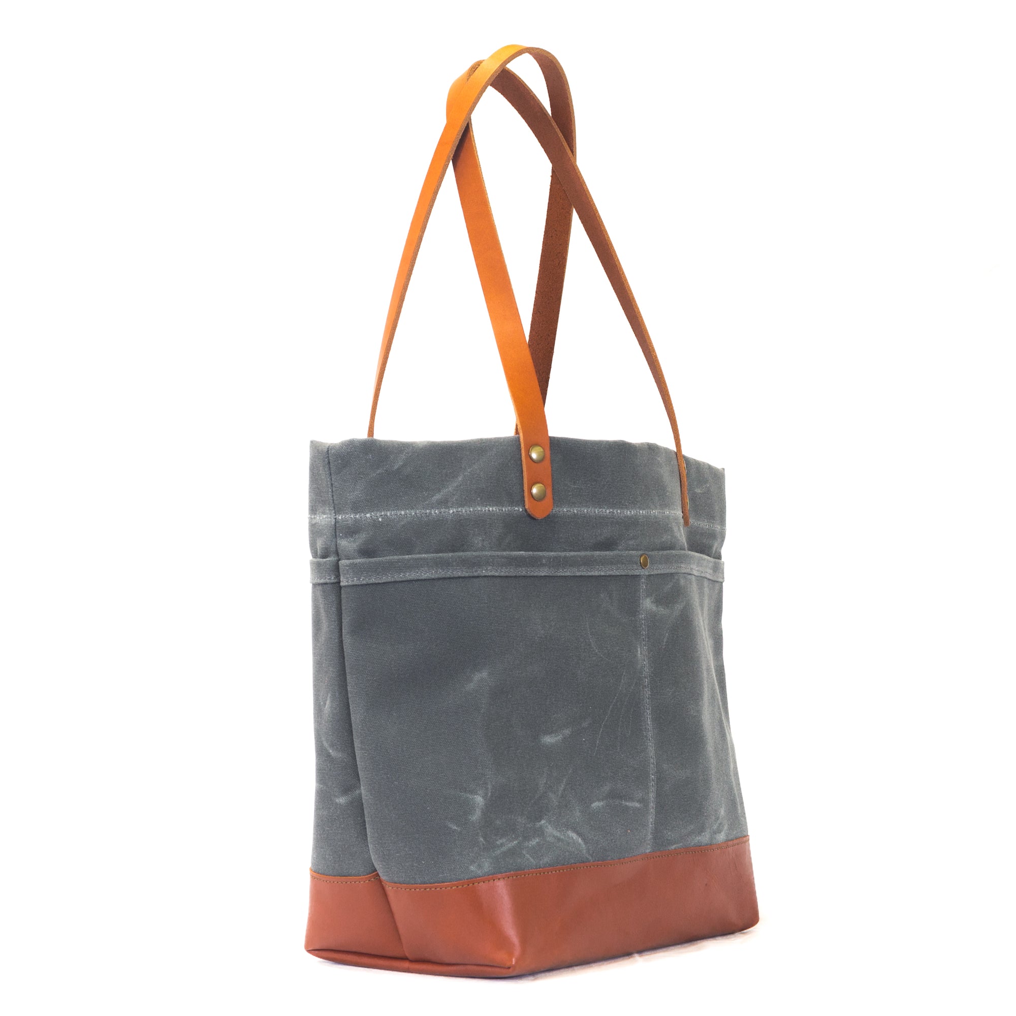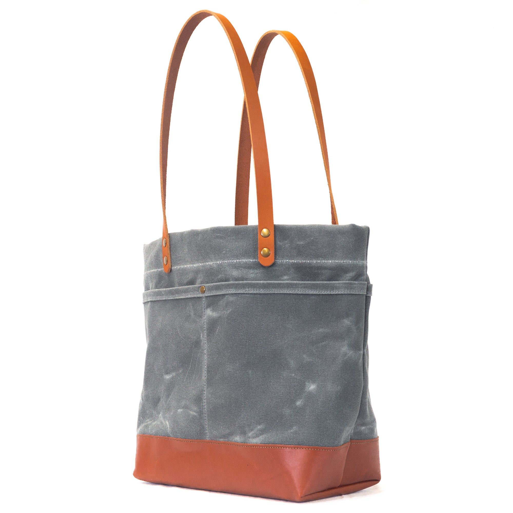 The deluxe version of our best-selling waxed canvas tote adds a bridle leather bottom panel for elegance and added durability. The bag features a large main compartment and six pockets for optimal organization. A perfect everyday bag for the office, farmers market, gym, beach, picnics, a night out on the town, or even as a very nice looking diaper bag.