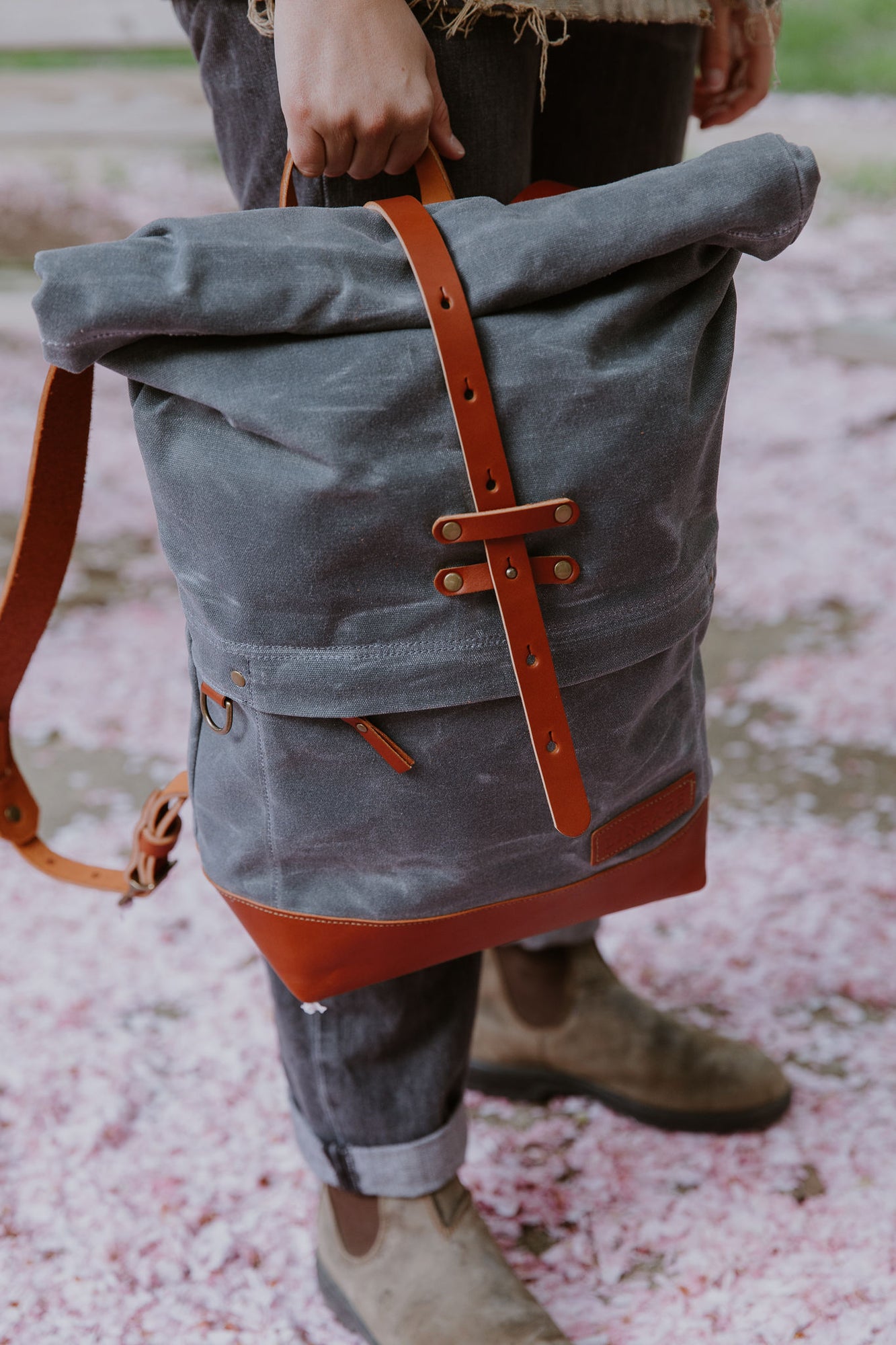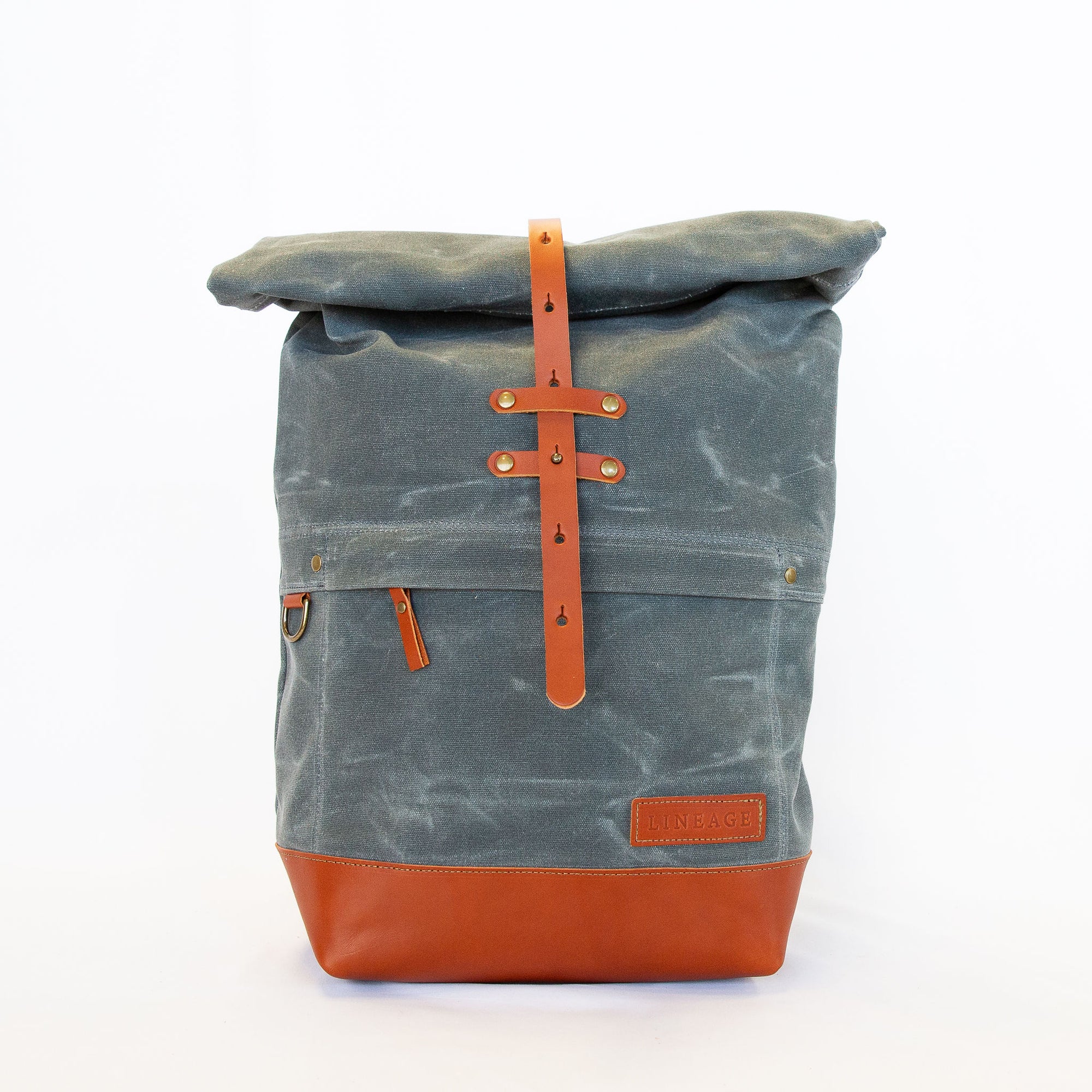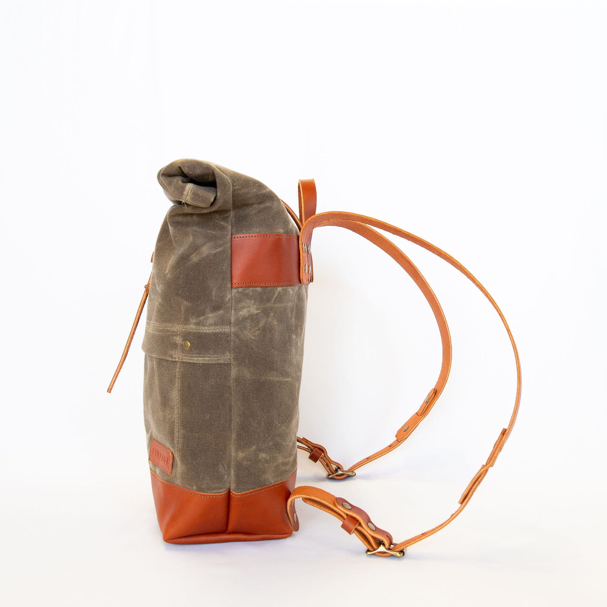The Appalachian is a full size roll-top backpack made for everyday adventures. Carry your essentials for a day at the office, on campus, or an escape to the woods. Made with our incredibly durable waxed cotton canvas, natural canvas lining, chestnut bridle leather, and antique brass hardware.